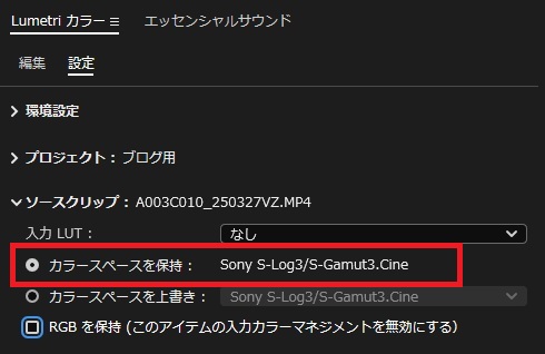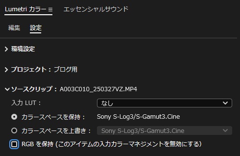 - 設定タブ → ソースクリップ → RGBを保持 をオン