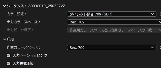 読み込めない場合は、「Rec.709」になります。